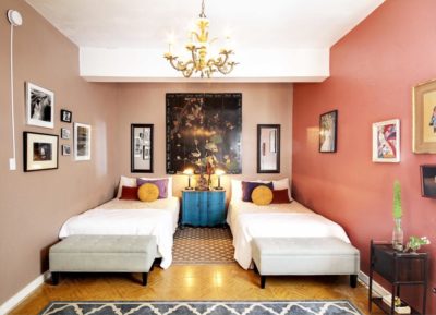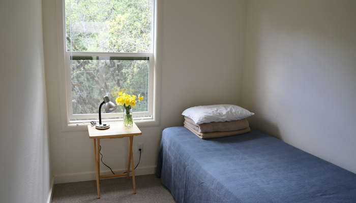 A non-connecting Chalet-style 2-bedroom apartment with queen or full-sized beds and a private bath. The Guest House offers a spacious and separate living area with a large kitchenette (no cooking facilities). Please note there is also a very sizable communal living area located in the center of the building with a dining area.